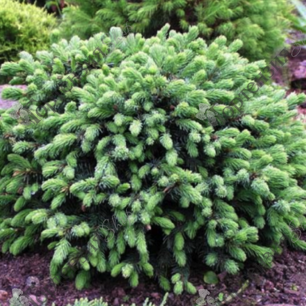 Ель сизая Эхиниформис (Picea glauca Echiniformis) - мини-форма, медленно растущая, крона в форме округлой подушки, позже куполообразная. В 30 лет высота растений 0,5-0,6 м и около 1 м диаметр кроны. Побеги короткие, до 2 см длиной, коричневые, тонкие растут радиально относительно центра кустарника. Хвоя 5-7 мм длиной, очень узкая, голубовато-зеленая, расположена радиально. Лучше растет на слабокислых, влажных почвах. Светолюбива. В укрытии нуждается лишь на очень малоснежных местах.