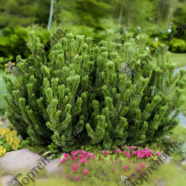 Сосна горная Гном (Pinus mugo Gnom) - карликовый густой хвойный кустарник высотой до 3 м, и диаметром до 2 м. Растет медленно. В молодом возрасте разрастается в ширь, позднее начинает вытягиваться вверх. Хвоя темно-зеленая, недлинная, 4-5 см длиной, жесткая. Шишки мелкие, округлые, одиночные. Созревают на второй год. Любит солнечные места. К почве не требовательна, растет на любых хорошо дренированных почвах, от кислых до щелочных. Морозостойка. Устойчива к городским условиям.