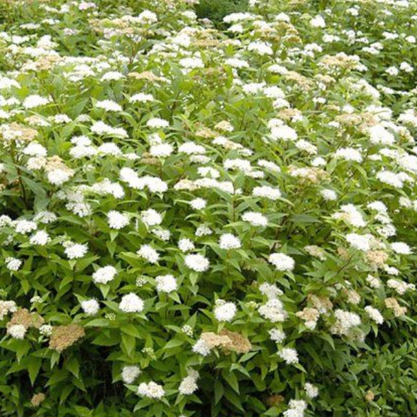 Спирея японская Альбифлора (Spiraea japonica Albiflora) – невысокий кустарник высотой до 80 см и шириной до 150 см. Листья зелёные, узкие, к осени желтеют. Цветки белые, собраны в щитковидные соцветия. Подходит для городского озеленения в групповых и одиночных посадках, в композиции с другими растениями.