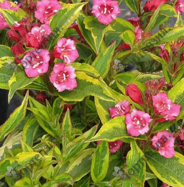 Вейгела цветущая Бригелла (Weigela florida 'Brigela' ) декоративный кустарник с раскидистой кроной. Листья зеленые с желтым краями. Цветки розовые воронкообразные 3см. Образуют соцветия по 3 – 4 штуки в каждом. Цветет два раза за сезон — обильно в июне-июле, повторно в августе-сентябре. Почвы предпочитает плодородные, дренированные. Морозостойкость -29С. Используется в одиночных и групповых посадках,