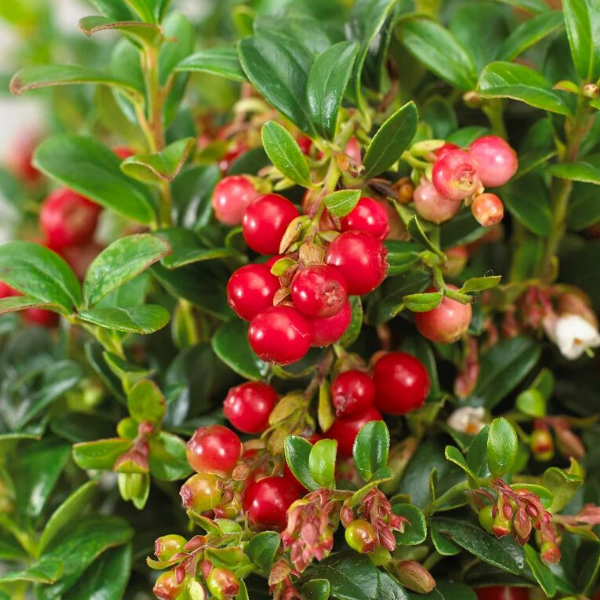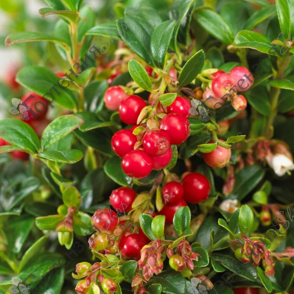Брусника садовая Мисс Черри – это не только вкусная и полезная ягода, но и прекрасное декоративное растение. Саженцы брусники крупноплодной достигают в высоту и ширину до 30 см. Листья мелкие темно - зеленые кожистые. Цветет в мае июне. Цветки мелкие белые или розоватые собраны в кисти. Плоды крупные до 1 см ярко-красные крупные, блестящие, созревают в августе - сентябре идеальной для употребления в свежем виде, а также для приготовления десертов, варенья и компотов. Брусника предпочитает кислые почвы (pH 3.5-5.0), хорошо растет на солнечных или полутенистых участках. Важно, чтобы место было защищено от сильных ветров. В ландшафте применяется как почвопокровник. Морозостойкость -40С.