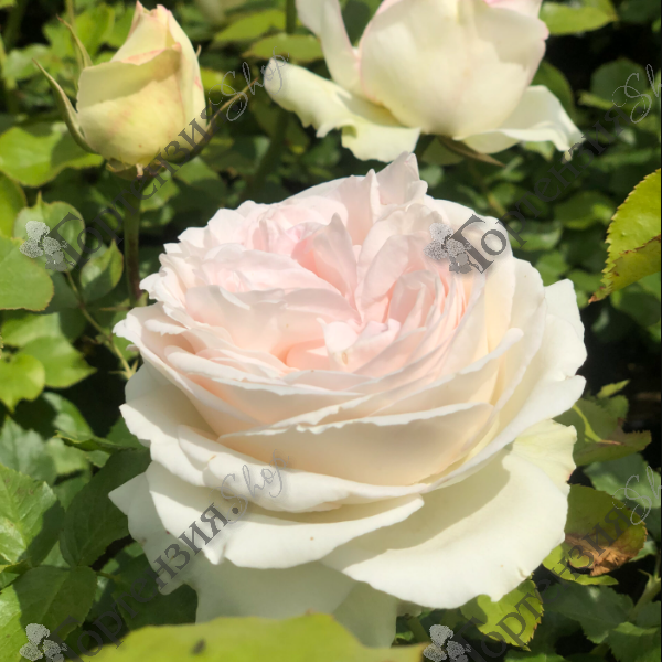Роза плетистая 'Palais Royal' (Rose climber 'Palais Royal') - сильнорослая плетистая розаВысотой до 3 м в высоту, в ширину до 1,5 м. Главная особенность этой розы – ее обильное и продолжительное цветение. Она радует глаз своими нежными, кремово-белыми цветками с легким розоватым оттенком на протяжении всего сезона, с весны до поздней осени. Все это красиво смотрится на фоне густой темно-зеленого цвета листвы. Цветки крупные, густомахровые (около 100 лепестков), в небольших кистях, чашевидные, старомодной формы диаметром до 10-13 см. Аромат легкий. Место посадки солнечное, хорошо проветриваемое место. Важно избегать низин, где скапливается холодный воздух. Почва должна быть плодородная, хорошо дренированная. Обрезка важна для формирования куста и стимулирования цветения. Весной проводится санитарная обрезка, удаляются сухие и поврежденные побеги. В течение сезона можно удалять отцветшие бутоны для стимуляции повторного цветения. Если вы выращиваете Palais Royal как плетистую розу, необходимо формировать ее на опоре. Морозостойкость -28С. Идеально подходит для украшения арок, пергол, беседок и стен домов, прекрасно смотрится в розариях, миксбордерах и одиночных посадках.