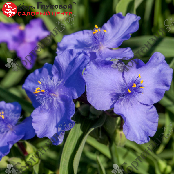 Традесканция андерсона 'Макс Дабл' - многолетнее травянистое растение с прямыми или ползучими облиственными стеблями. Листья саблевидные, около 20см длиной, весной очень привлекают слизней. Цветки фиолетовые,густо-синие собраны в простые, зонтиковидные или метельчатые соцветия,появляются в начале лета и не исчезают до осени. Каждый цветок раскрывается всего на один день, но гроздья бутонов в каждом соцветии гарантируют длительное, непрерывное цветение.Предпочитают слегка притененные, защищенные от ветра места. Требует участков с увлажненной, богатой, гумусной почвой. Цветение: май-август.