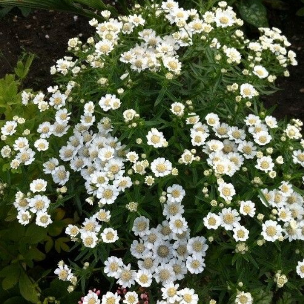 Тысячелистник птармика "Nana Compacta"- компактный куст, очень густой. Стебли прямостоячие с большим количеством листьев. В высоту может достигать до 30 см. Цветки-корзинки крупные, ослепительно белого цвета.  Растение предпочитает солнечные места и хорошо дренированные почвы. Хорошо переносит холода и засуху. Не боится вредителей и болезни. Используется для групповой посадки в рокариях, миксбордерах, а также в цветущих садах, где имеются другие многолетники.